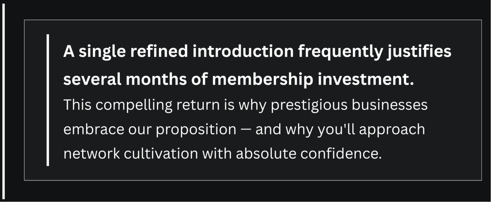 ✨ This transcends mere business — it's a lifestyle defined by prestige, influence, and meaningful connection.